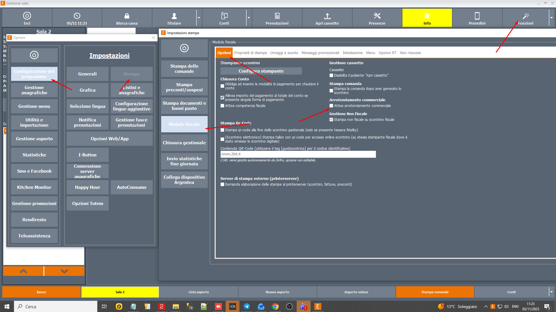 Andare in Scontrini e preconti -> opzioni stampe –> scontrini per la gestione di arrotondamento commerciale del conto ai 5 cent se pagato totalmente in contanti.