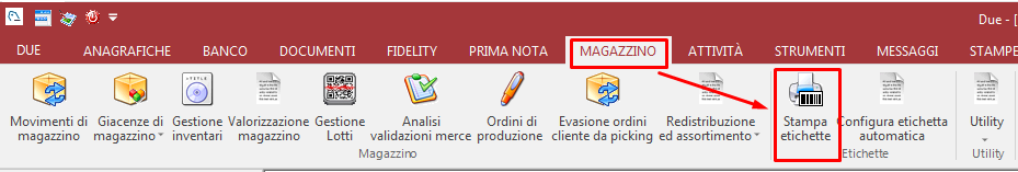 Accedere alla funzione da MAGAZZINO → Stampa etichette