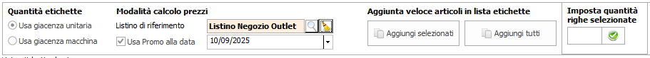 La funzione “Quantità etichette pari a giacenza“, dalla versione 24.34, permette di impostare il numero etichette pari alla giacenza di uno o più magazzini, contemplando il concetto di magazzino principale / viaggiante / stock: