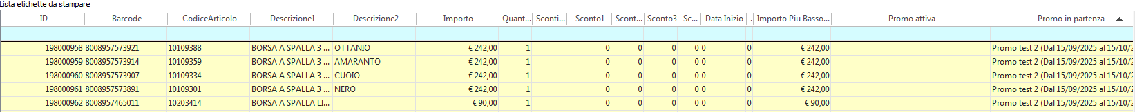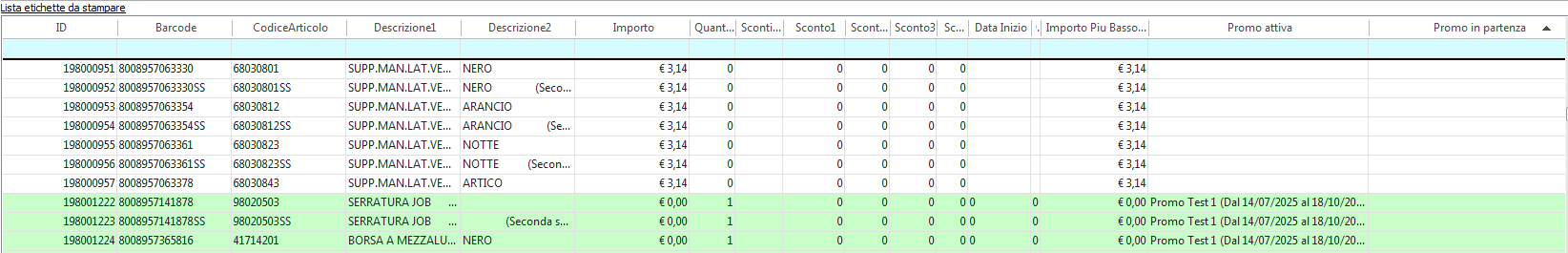 Le diverse casistiche sono anche caratterizzate da diverso colore delle righe, verde per la prima e giallo per la seconda, mentre le righe riguardanti articoli privi di promo rimangono bianche.