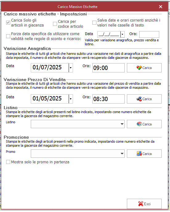 - Stampa etichette programmate: consultare la guida approfondita cliccando qui